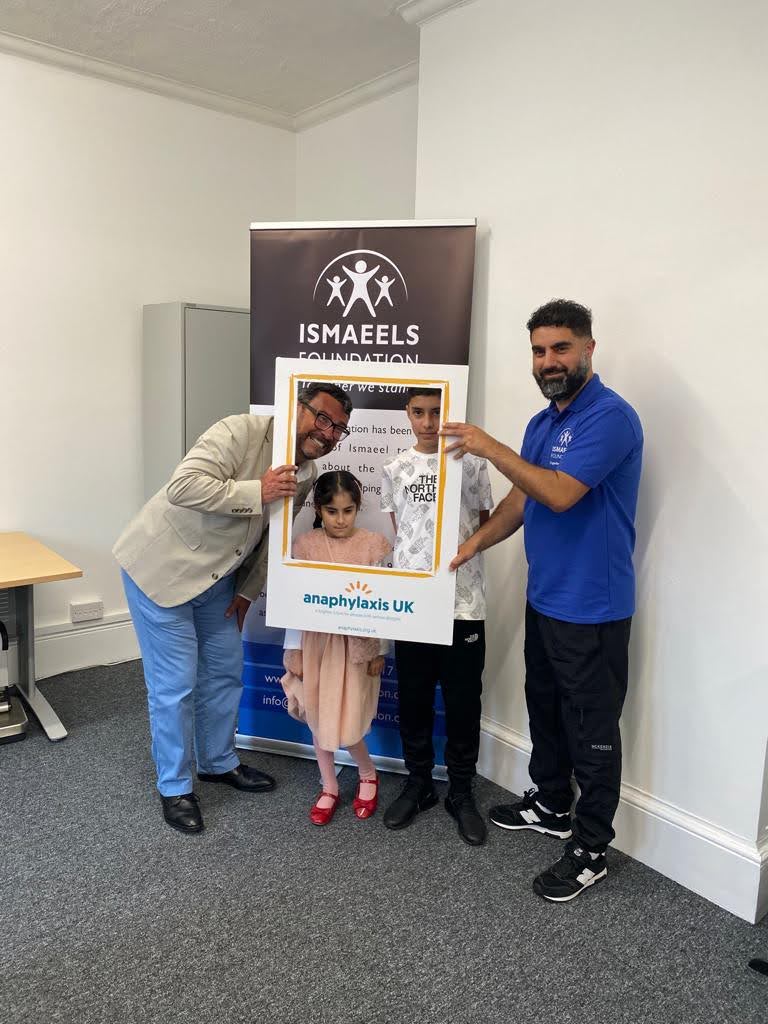 Members of Ismaeel's Foundation including Ismaeel's father, Tehseen Ashraf, made the trip down south to Farnborough to the headquarters of the Anaphylaxis UK. We were welcomed by Simon Williams and the staff and we told the tragic story of how Ismaeel passed away and the efforts we are all putting in to raise awareness of anaphylaxis. We raised over £2500 for Anaphylaxis UK so thank to everyone for their support.